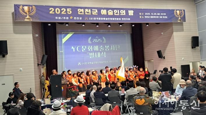 [아시아통신] 지역 예술·문화 발전을 위해 한 해 동안 활동해 온 예술인들이 한자리에 모여 성과를 나누는 ‘2025 연천군 예술인의 밤’이 지난 26일 연천군종합복지관 대강당에서 열렸다.