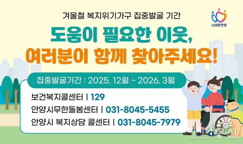 한편, 생계·주거·돌봄 등의 도움이 필요한 가구는 안양시복지콜센터(031-8045-7979) 또는 거주지 관할 행정복지센터에서 상담받을 수 있다.