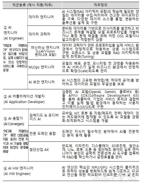 「AI 캠퍼스」는 AI 산업 인력수요와 국내외 AI 직무분류를 고려해 ‘AI 엔지니어’, ‘AI 어플리케이션 개발자’, ‘AI 융합가’, ‘AI 하드웨어 엔지니어’ 등 4개 직군의 실무 인력 양성을 목표로 한다. 참여를 희망하는 기관은 이와 같은 인력 양성 목표에 맞게 훈련과정을 설계해야 하며, 기업의 현업 문제를 반영한 프로젝트 학습 비중을 30% 이상 편성해야 한다.
