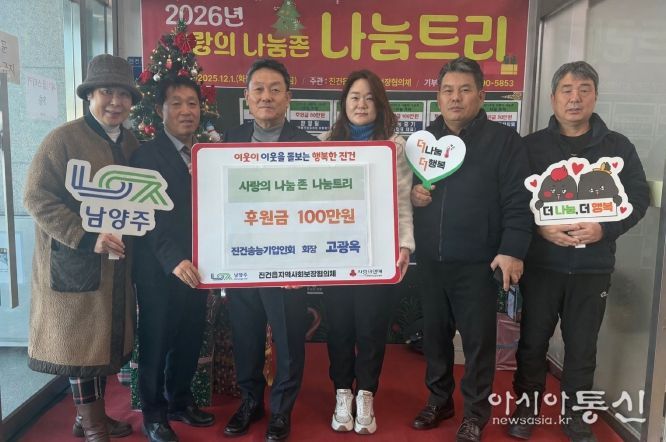 [아시아통신] 남양주시는 지난 5일 진건송능기업인회가 ‘진건읍, 사랑의 나눔존 나눔트리’ 행사에서 후원금 100만 원을 기탁했다고 7일 밝혔다.