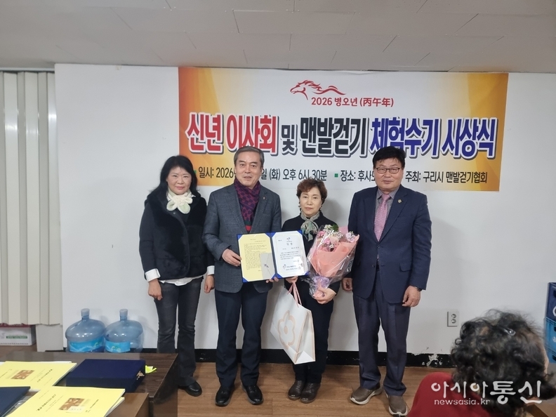 구리시맨발걷기협회(신동영,마정현 공동회)가 주최한 ‘제1회 맨발걷기 체험 수기 공모전’ 시상식이 지난 1월 6일, 후사모회관에서 수상자 가족 등 많은 협회 임원들이 참석하여 축하 해주는 가운데 성황리에 열렸다.