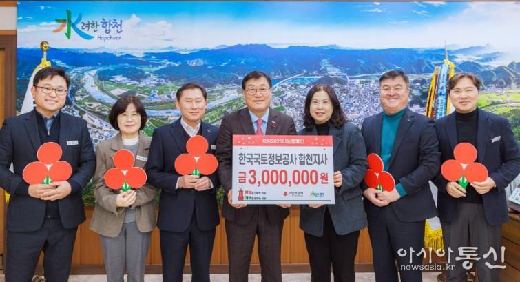 [아시아통신] 합천군은 8일 한국국토정보공사 합천지사가 합천군청을 방문해 관내 저소득세대를 돕기 위한 이웃돕기 성금 300만원을 지정기탁했다고 밝혔다.
