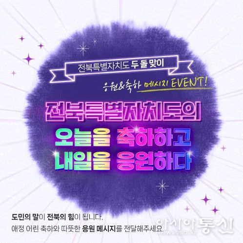 [아시아통신] 전북특별자치도는 출범 2주년을 맞아 도민이 직접 참여하는 '도민 참여 축하·응원 메시지 이벤트'를 1월 12일부터 23일까지 운영한다.