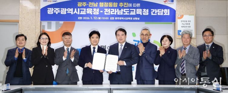 [아시아통신] 전라남도교육청과 광주광역시교육청이 12일 광주·전남 행정 통합에 찬성하고 협력을 다짐하는 공동발표문을 채택했다.