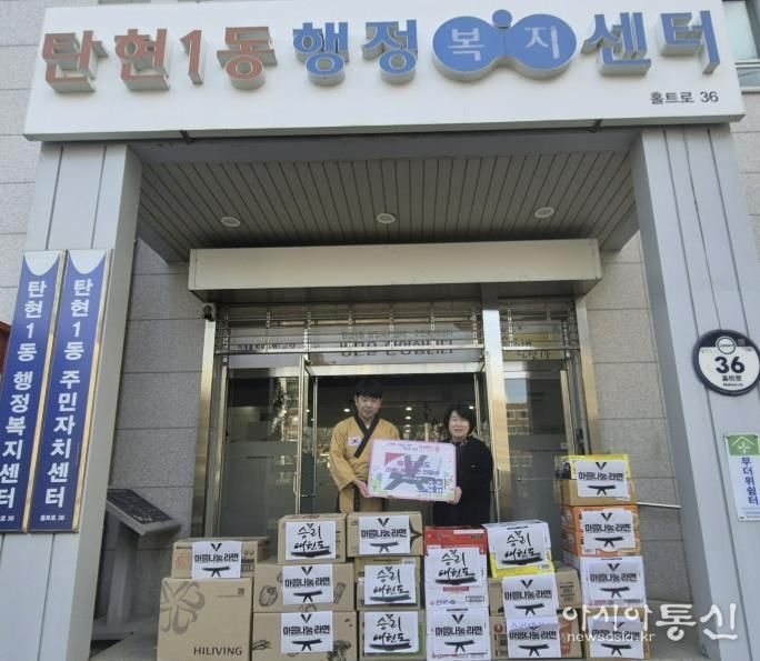 [아시아통신] 고양특례시 일산서구 탄현1동은 지난 9일 승리태권도로부터 지역 내 어려운 이웃을 돕기 위한‘마음나눔 라면’ 933개를 기부받았다고 밝혔다.