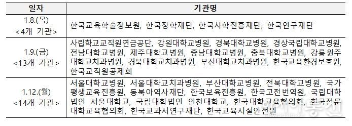 둘째 날인 1월 9일에는 서울(사학연금공단 TP타워)에서 국립대학병원 등 13개 기관이 주요 업무를 보고했다.