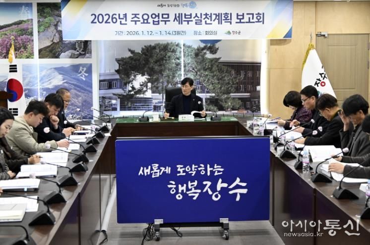[아시아통신] 장수군은 지난 12일부터 오는 14일까지 3일간 군청 회의실에서 ‘2026년 업무계획 보고회’를 열고 올해 군정의 주요 역점 사업과 핵심 과제를 공유한다고 밝혔다.