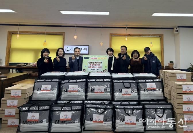 [아시아통신] 의정부시 송산2동주민센터는 1월 15일 성약교회가 겨울이불 및 과일바구니 25세트를 기탁했다고 밝혔다.