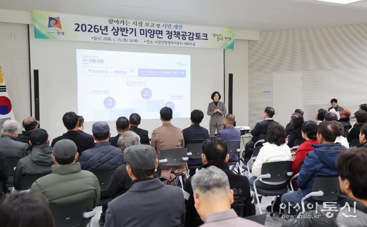 [아시아통신] 안성시 미양면은 지난 1월 15일, 미양면행정복지센터 대회의실에서 주민 120여 명이 참석한 가운데 ‘2026년 상반기 미양면 정책공감토크’를 성황리에 개최했다.