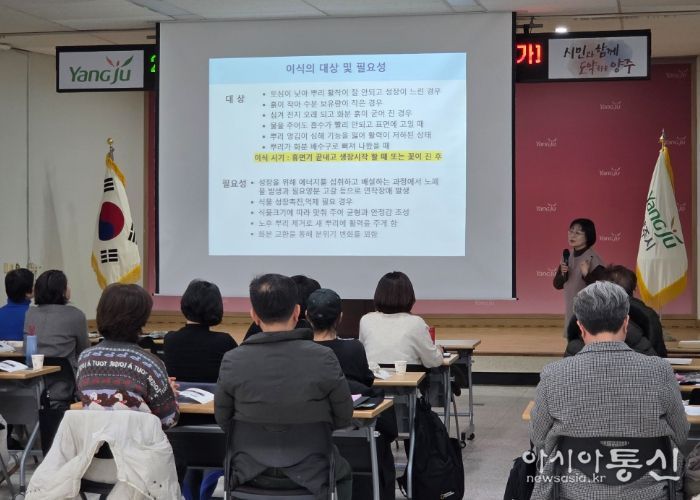 [아시아통신] 양주시가 지난 16일 농업기술센터 내 교육장에서 도시농업 활성화와 전문 인력 양성을 위한 ‘도시텃밭전문가 교육’을 개최했다.