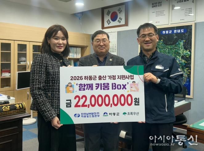 [아시아통신] 하동군은 지난 19일 군청 부군수실에서 2026년 하동군 출산가정 지원사업인 ‘함께키움BOX’ 전달식을 개최하며, 출산과 양육을 함께 책임지는 지역 돌봄 정책을 한층 강화했다.