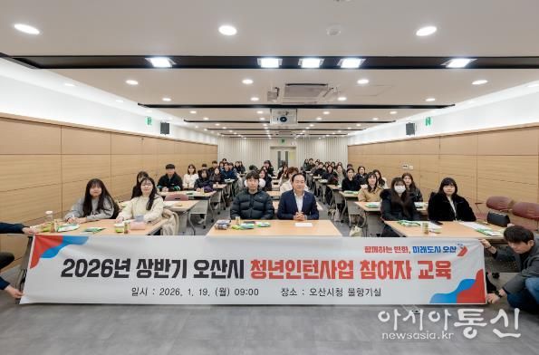 [아시아통신] 오산시는 지난 19일 시청 물향기실에서 상반기 청년인턴 46명을 대상으로 직무역량 강화교육을 실시했다고 밝혔다.