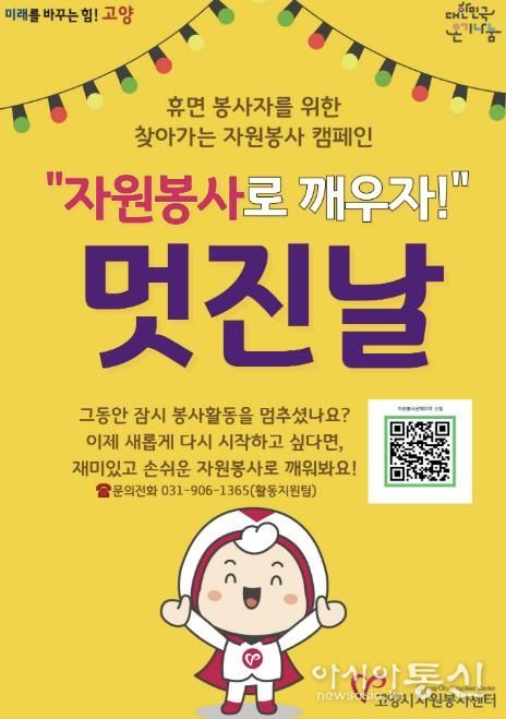 [아시아통신] 고양시자원봉사센터는 휴면 봉사자들의 자원봉사활동 참여 촉진을 위한 ‘자원봉사로 깨우자 멋진날’참여자를 상시 모집한다고 20일 밝혔다.