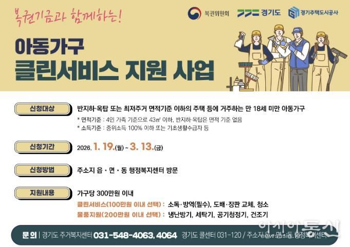 [아시아통신] 의왕시가 복권기금과 함께하는 경기도 ‘아동가구 클린서비스 지원사업’의 신청을 1월 19일부터 3월 13일까지 받는다.