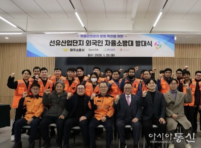 [아시아통신] 파주소방서는 1월 20일 오후 4시, 파주시 문산읍 선유산업단지 내 스페이스톡에서 외국인 근로자 자율소방대 발대식을 열었다. 이번 행사는 겨울철 화재위험이 높은 시기에 외국인 고용사업장의 자율안전관리 역량을 높이기 위한 취지로 마련됐다.