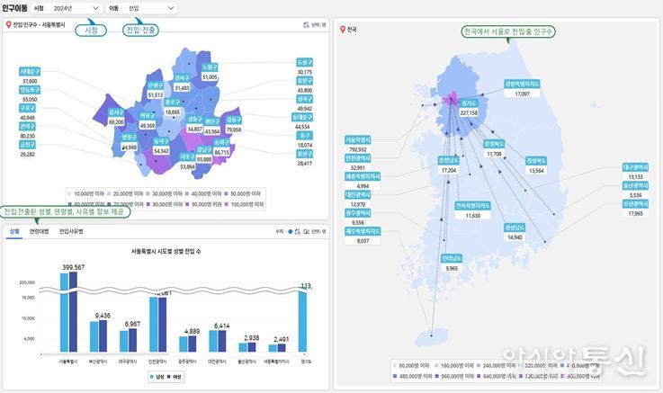 서울시는 서울인구 이동 규모와 방향, 전입 사유, 연령대별 이동 특성 등 구조적 변화를 종합적으로 분석한'서울시 인구이동 분석(2001~2024)'결과를 공개했다.