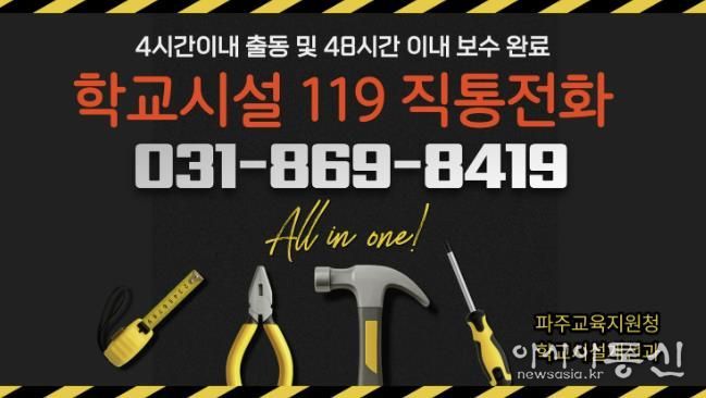 [아시아통신] 파주교육지원청이 학교 현장의 시설 관리 부담을 덜기 위해 ‘학교시설 119’ 서비스를 2026년부터 대폭 강화한다고 21일 밝혔다. 이번 개편의 핵심은 ‘접근성’과 ‘신속성’이다.