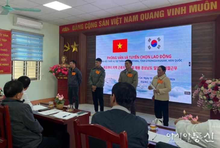 [아시아통신] 밀양시는 지난 18일부터 20일까지 베트남 라오까이성을 방문해 공공형 계절근로자 선발을 위한 현지 면접과 체력 평가를 실시하고, 우수 인력 10명을 최종 선발했다고 23일 밝혔다.