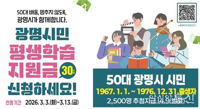시는 오는 3월 3일부터 13일까지 11일간 ‘2026년 광명시민 평생학습지원금’ 신청을 받는다고 26일 밝혔다.