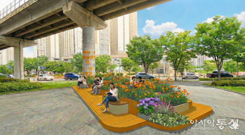 <회색빛 고가하부 도로를 화사한 선형정원으로>