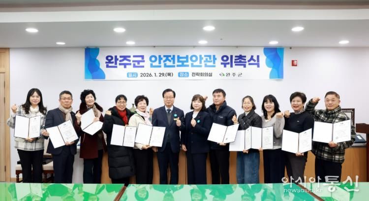 [아시아통신] 완주군이 ‘2026년 완주군 안전보안관 위촉식’을 열고 신규 안전보안관 12명에게 위촉장을 수여했다.