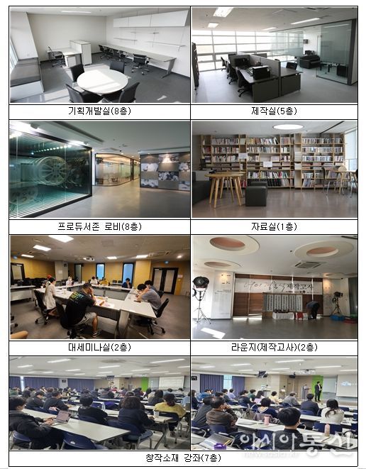 영화창작공간은 약 2,400평(7,898㎡) 규모의 대규모 영화・영상 콘텐츠 개발 공간으로 ▴감독존 18실 ▴프로듀서존 40실 ▴작가존 42실(개인실 20실, 오픈실 12실, 개별실 10실) ▴오피스존 5실 ▴프로덕션존 12실 등 총 117실로 구성돼 있다. 입주자는 개인 작업실 외에도 세미나실, 회의실, 자료실 등 다양한 공용공간을 자유롭게 이용할 수 있다.
