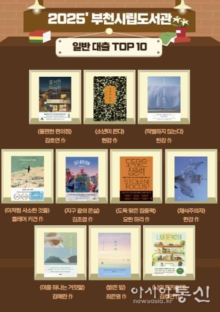 [아시아통신] 부천시립도서관은 ‘부천시민의 책장 속 이야기’를 슬로건으로 2025년 한 해 동안 가장 많이 대출된 도서 30권을 선정해 발표했다.