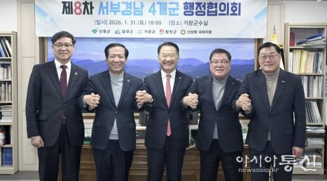 [아시아통신] 거창군은 지난 31일 거창군청에서 신성범 국회의원과 산청ᐧ함양ᐧ거창ᐧ합천군 군수가 참석해 ‘서부경남 4개군 제8차 행정협의회'를 개최했다.