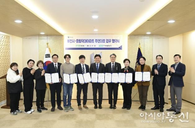 [아시아통신] 부천시는 1월 30일 시청 만남실에서 흥립약대아파트 주민대표, 현대흥립통합재건축추진준비위원회와 함께 ‘현대건설 보유 지분 기부채납(무상귀속)을 위한 업무협약’을 체결했다.