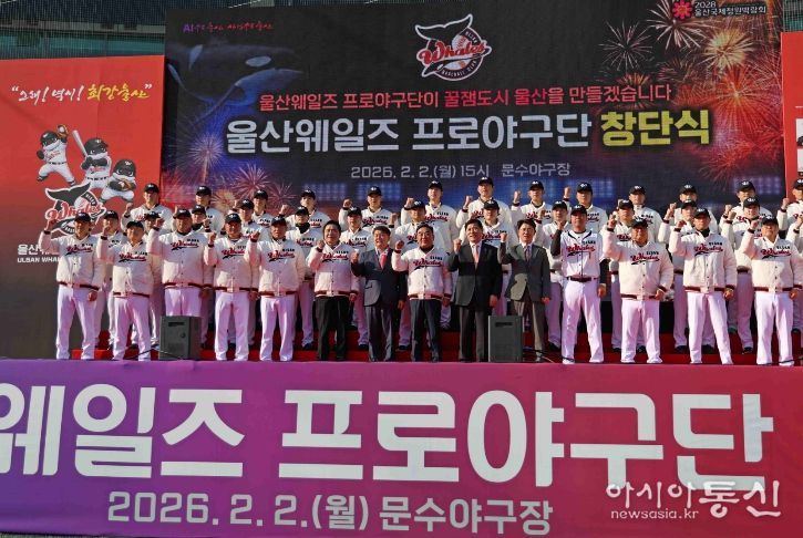 [아시아통신] 울산광역시(시장 김두겸)는 2월 2일(월) 울산 문수야구장에서 '울산 웨일즈' 공식 창단식을 개최했다.
