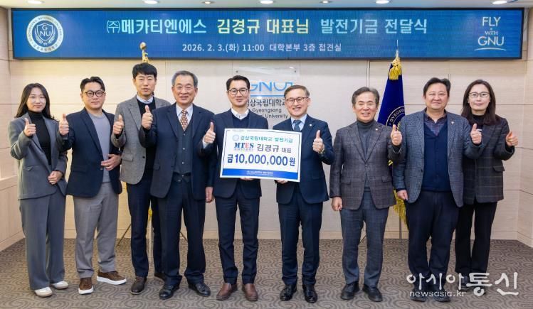 [아시아통신] 경상국립대학교는 2월 3일 오전 11시 대학본부 3층 접견실에서 ㈜메카티엔에스 김경규 대표가 대학발전기금 1000만 원을 기부했다고 밝혔다.