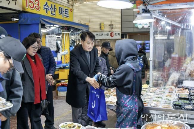 [아시아통신] 하은호 군포시장은 설 명절을 앞둔 지난 5일 관내 전통시장을 찾아 장보기 행사를 진행하며 시장 상인들을 격려했다.