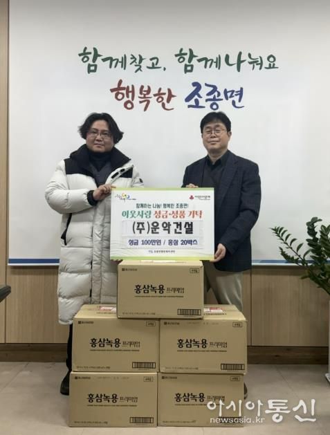 [아시아통신] 가평군 소재 운악건설은 설 명절을 앞두고 최근 조종면 행정복지센터를 방문해 성금 100만 원과 홍삼 20박스를 기탁하며 이웃사랑을 실천했다.