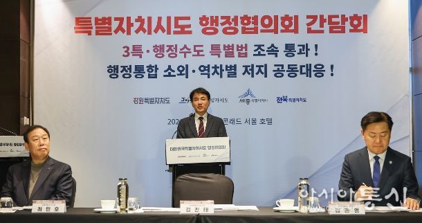 [아시아통신] 대한민국특별자치시도 행정협의회(대표회장 강원특별자치도지사 김진태) 시‧도지사는 2026년 2월 8일 서울 콘래드 호텔에서 긴급 회동, 간담회를 개최했다.