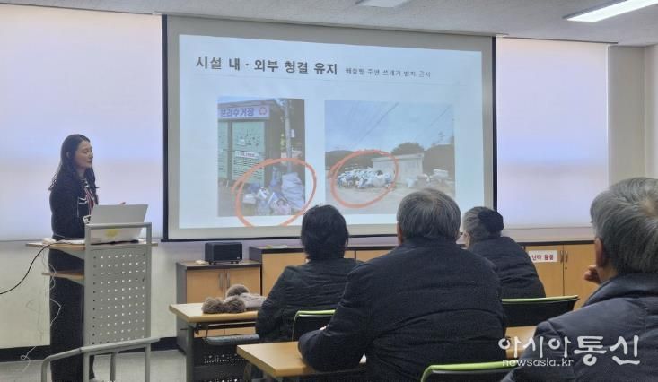 주요 교육 내용은 현장에 바로 적용할 수 있도록 실무 중심으로 구성됐으며 △재활용 가능 자원의 올바른 분리배출 요령 △거점배출시설 운영 및 관리 방법 △불법·미분리 배출 쓰레기 처리 요령 등이다. 특히 반복적으로 발생하는 분리배출 혼선 사례를 중심으로 현장에서 겪는 애로사항 해결에 중점을 두었다.