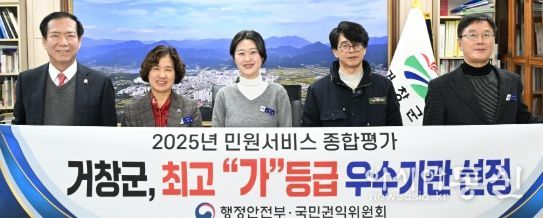 [아시아통신] 거창군은 국민권익위원회·행정안전부 공동 주관한 ‘2025년 민원 서비스 종합평가’에서 최고 등급인 ‘가등급’에 선정돼 전국 최고 수준의 민원 서비스를 인정받았다.