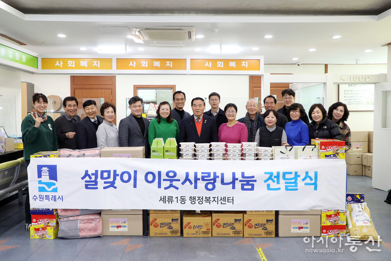 이날 행사에서는 쌀과 부식류, 현금 후원 등 생활에 필요한 물품이 전달됐으며, 세류1동은 사전 조사를 통해 지원 대상이 중복되지 않도록 대상자를 선정했다. 후원 물품은 2월 13일까지 각 가구에 순차적으로 전달될 예정이다.