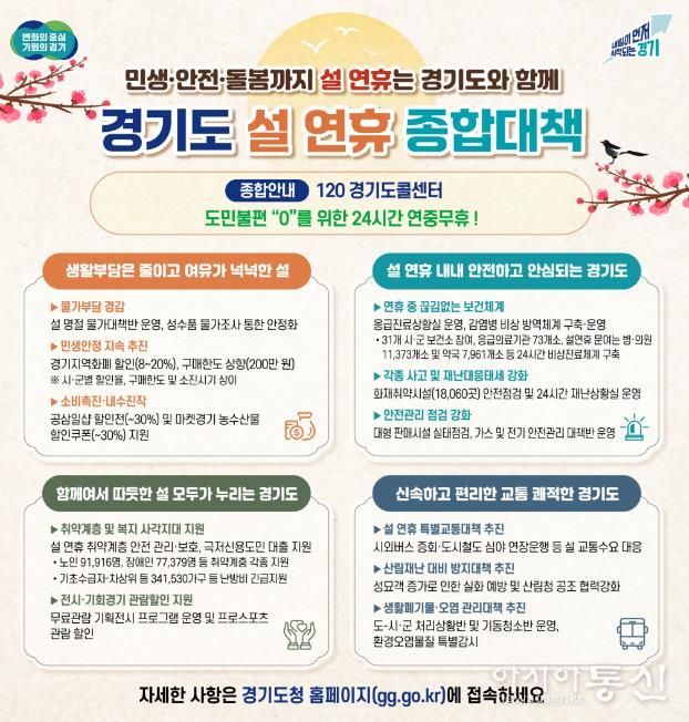 [아시아통신] 경기도가 도민들이 따뜻하고 편안한 명절을 보낼 수 있도록 ‘설 연휴 종합대책’을 추진한다.