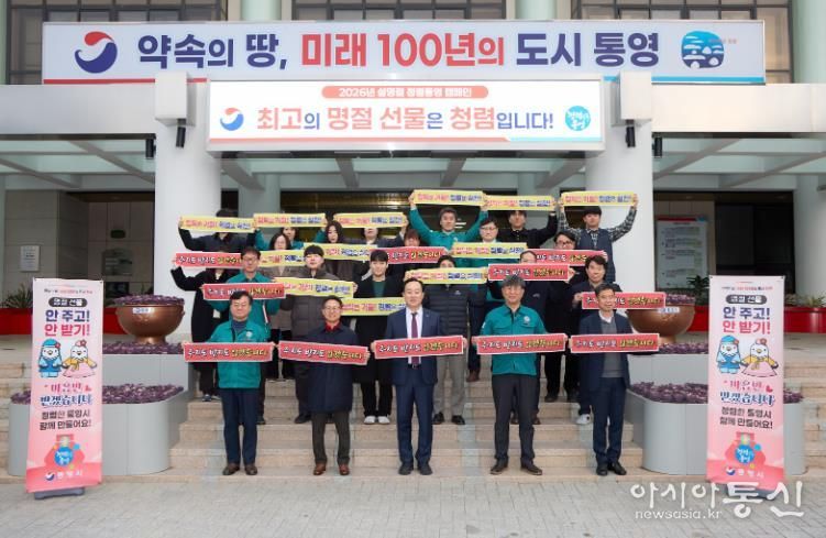 [아시아통신] 통영시는 설 명절을 앞두고 공직사회의 청렴 의식을 확산하고 공직자 행동강령 준수를 당부하기 위해 지난 10일 1청사 현관에서‘2026년 설명절 대비 청렴통영 캠페인’을 실시했다.