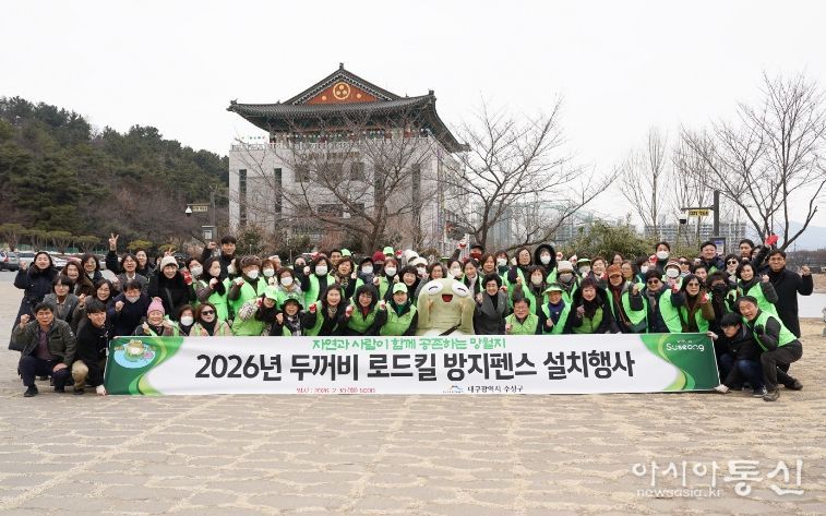 [아시아통신] 대구 수성구는 지난 10일 전국 최대 두꺼비 집단 산란지인 욱수동 망월지 일대에서 ‘두꺼비 로드킬 방지 펜스 설치’ 행사를 실시했다.