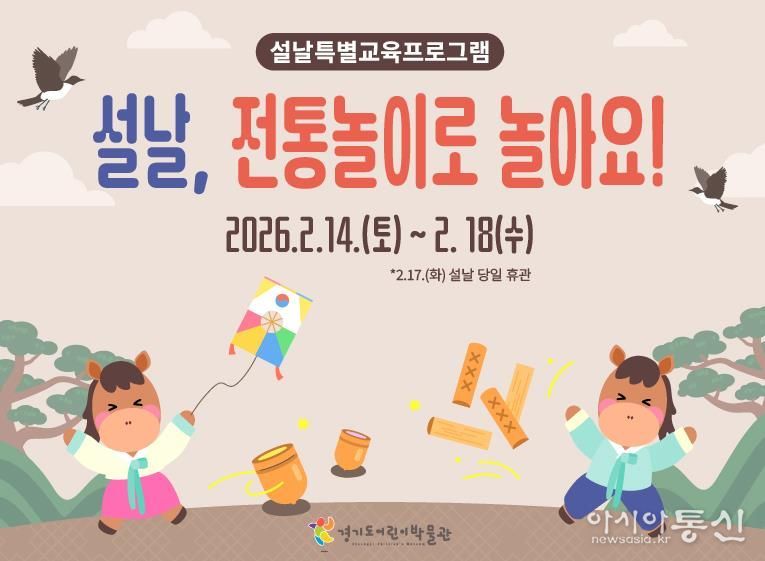 [아시아통신] 경기문화재단 경기도어린이박물관은 설날을 맞이하여 2026년 2월 14일부터 2월 18일까지 설날 특별프로그램 '설날, 전통놀이로 놀아요!'를 운영한다. 설 연휴 동안 박물관을 방문하는 어린이와 동반 가족을 위해 가족 간의 유대감을 높일 수 있는 전통문화 체험프로그램 3종을 준비했다.