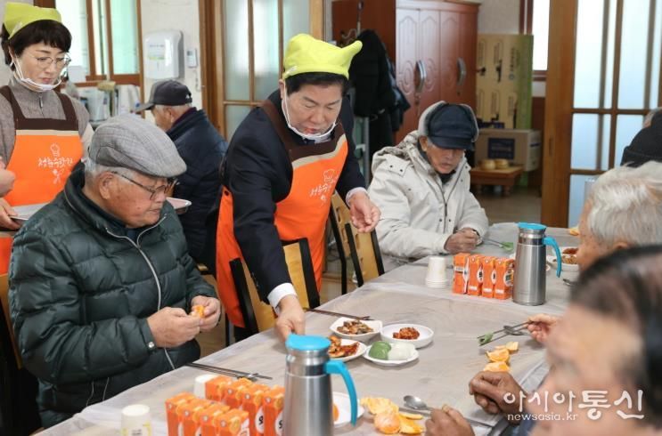 공영민 군수는 분회경로식당과 노인복지시설을 차례로 방문해 어르신 한 분 한 분께 인사를 전하고 건강 상태와 생활 불편 사항 등을 세심히 살폈다.