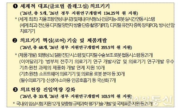 [아시아통신] 과학기술정보통신부, 산업통상부, 보건복지부, 식품의약품안전처는 2026년 1차 연도 신규 과제 공고와 사업설명회 개최를 통해 ‘범부처 첨단 의료기기 연구개발 사업’을 본격 추진한다고 밝혔다.