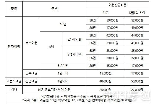 [아시아통신] 2026년 3월 1일부터 여권발급수수료가 2천원 인상된다.