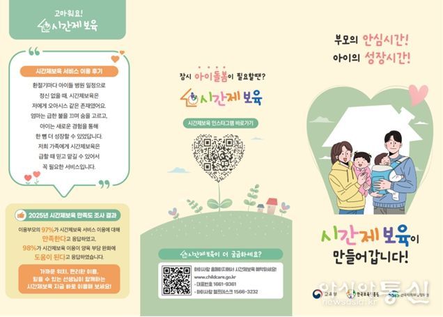 [아시아통신] 교육부는 가정양육 부모를 위한 시간제 보육 서비스의 질 제고와 이용자 편의 향상을 위해 시간제 보육 서비스를 개선하여 내실 있게 추진한다고 밝혔다.