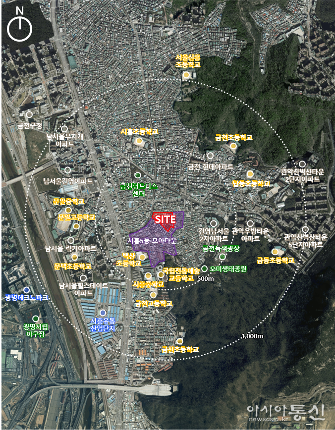 금천구 시흥5동 919-60번지 일대 모아주택은 총 7개동의 공동주택과 부대복리시설로 조성된다.