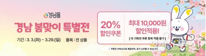 [아시아통신] 경상남도와 (재)경상남도투자경제진흥원이 운영하는 e경남몰이 3월 3일부터 예산 소진 시까지 ‘2026년 봄맞이 할인 기획전’을 진행한다.