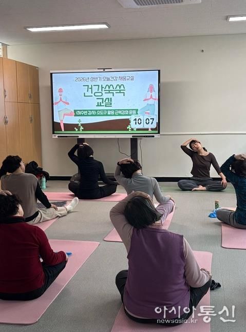 ‘건강쑥쑥교실’은 근력 강화 운동 프로그램으로 일상생활에 필요한 기초 체력 증진에 초점을 맞추고 있다. 전문 강사가 소도구를 활용해 안전하면서도 효율적인 운동을 진행한다.