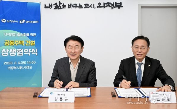 [아시아통신] 의정부시는 3월 6일 ‘아파트 3무(無) 혁신 10대 프로젝트’의 실효성을 높이고자 양우건설(주)과 세 번째 상생협약을 체결하고, 지역 건설산업의 상생 기반 구축과 경제 활성화에 본격적인 시동을 걸었다. 특히 이날 협약식에는 양우건설(주) 고문철 대표가 직접 참석해 시와의 협력 의지를 표명했으며, 이를 통해 사업 추진에 대한 신뢰도를 한층 높이는 계기를 마련했다.