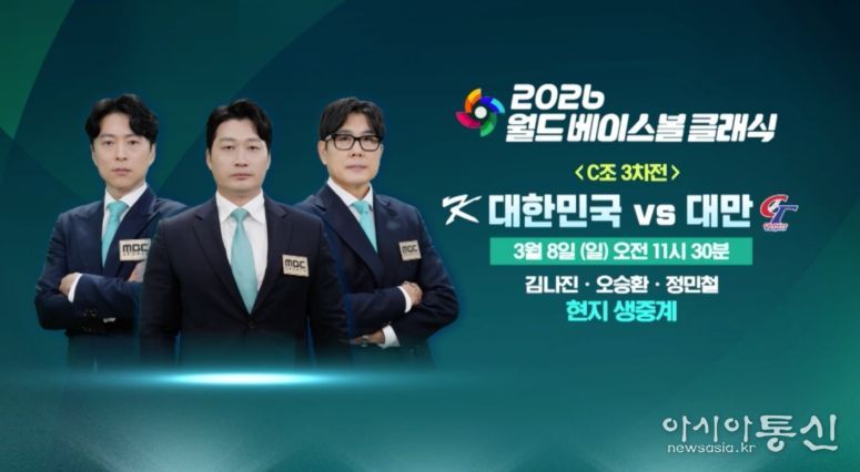 [아시아통신] 2026 월드 베이스볼 클래식(WBC) 1라운드에서 대한민국이 8강 진출을 향한 중요한 승부를 앞두고 있다. MBC는 오늘(8일) 오전 11시 30분부터 일본 도쿄돔에서 열리는 대한민국과 대만의 WBC 1라운드 3차전 경기를 도쿄 현지에서 생중계한다.